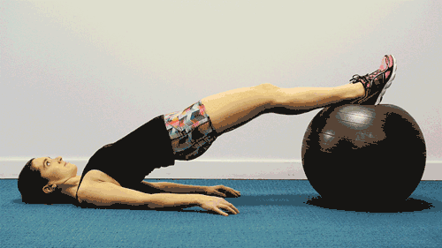 En realidad este es un ejercicio complicado pues las piernas, glúteos y abdomen estarán contraídos por mucho tiempo. Utilizando la pelota, nuestro cuerpo se esforzará más para obtener el equilibrio.