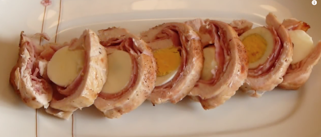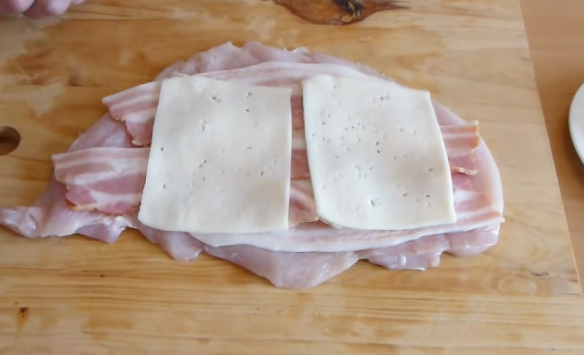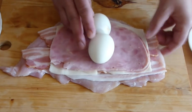 Envuelve un huevo en queso, jamón, bacon y pollo